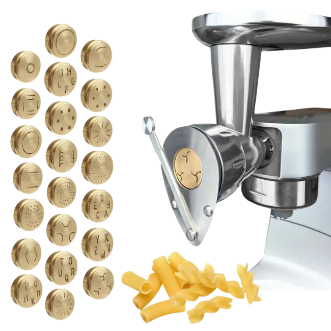 Die Matrizen bestehen aus traditioneller Bronze, die der Pasta eine leicht raue Oberfläche verleiht – ideal, damit Saucen besonders gut haften. Gleichzeitig sind sie robust und langlebig, selbst bei regelmäßigem Einsatz.