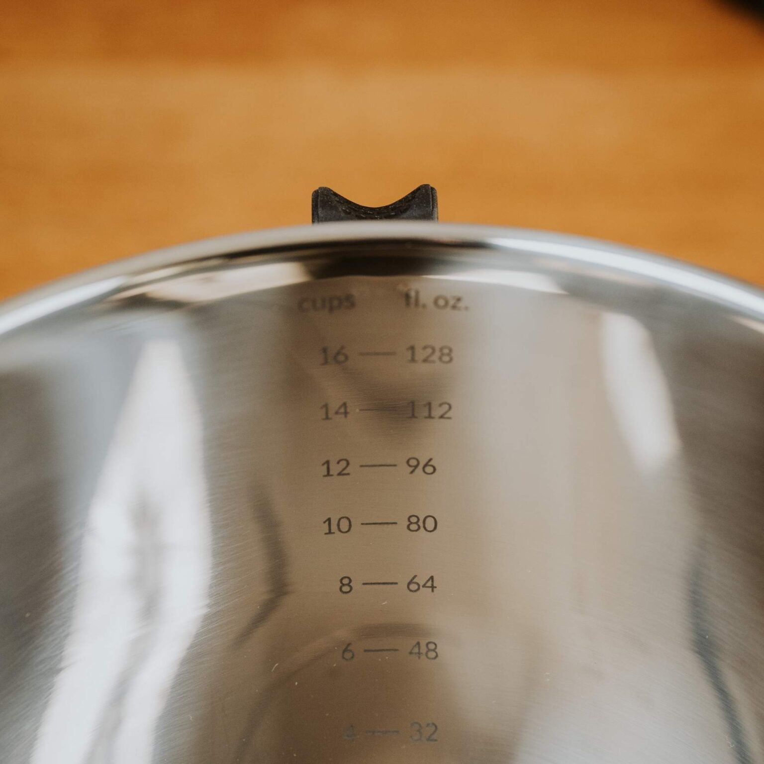Kein Problem! Auf der Innenseite findest du präzise eingelaserte Mess-Skalen für gängige Zutaten und Maßeinheiten – eine clevere Lösung, für effizientes Arbeiten, ohne lästiges Suchen nach separatem Zubehör. Damit auch beim Ausschütten alles da landet, wo du es möchtest, haben wir die Schüssel mit einem praktischen Schüttrand ausgestattet. Erfreue dich am kleckerfreien Verwenden unserer durchdachten Profi-Rührschüssel „Super Bowl“. Entdecke ein neues Niveau der Küchenfreude mit unserer Superbowl – dein zuverlässiger Partner für unzählige kulinarische Abenteuer!