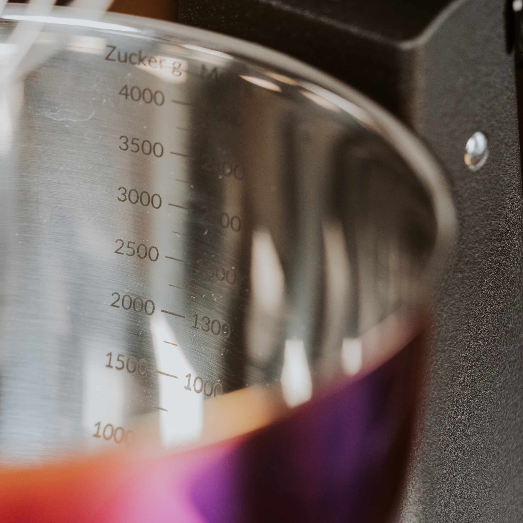 Kein Problem! Auf der Innenseite findest du präzise eingelaserte Mess-Skalen für gängige Zutaten und Maßeinheiten – eine clevere Lösung, für effizientes Arbeiten, ohne lästiges Suchen nach separatem Zubehör. Damit auch beim Ausschütten alles da landet, wo du es möchtest, haben wir die Schüssel mit einem praktischen Schüttrand ausgestattet. Erfreue dich am kleckerfreien Verwenden unserer durchdachten Profi-Rührschüssel „Super Bowl“. Entdecke ein neues Niveau der Küchenfreude mit unserer Superbowl – dein zuverlässiger Partner für unzählige kulinarische Abenteuer!
